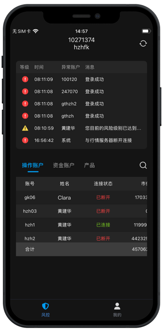 随手控 APP 是综合交易平台风控终端的移动端版本,作为轻量化口袋式移动风控工具,突破PC 端操作场景局限,支持随时随地登录查询账户操作动态、资金账户明细、产品持仓信息,同时可即时接收异常提示,助力用户全面掌控风控状态,实现更灵活、高效的风控管理。